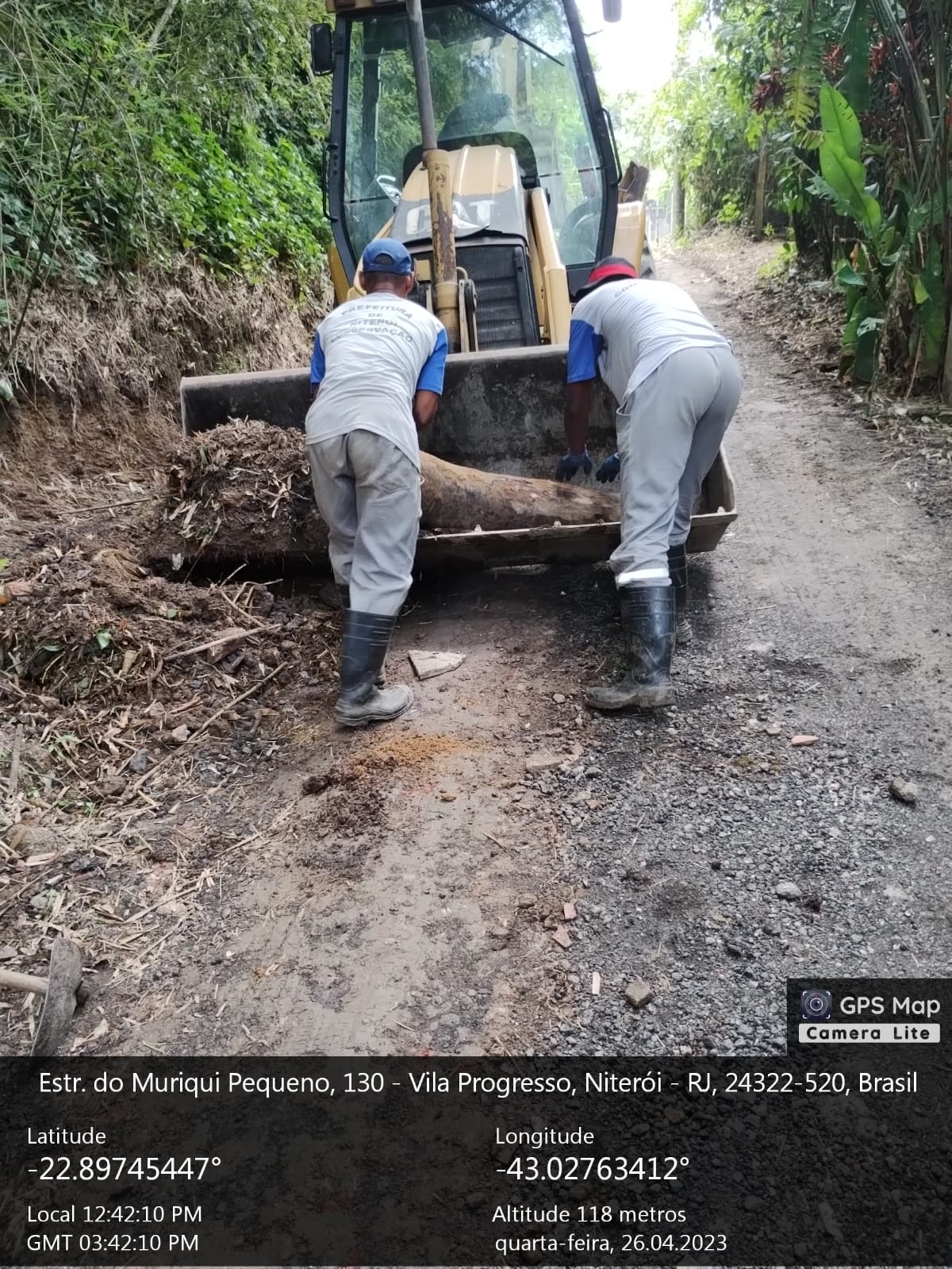 Equipes estão essa semana realizando terraplanagem e limpeza de canaletas em toda a extensão da Estrada do Muriqui Pequeno, na Vila Progresso.