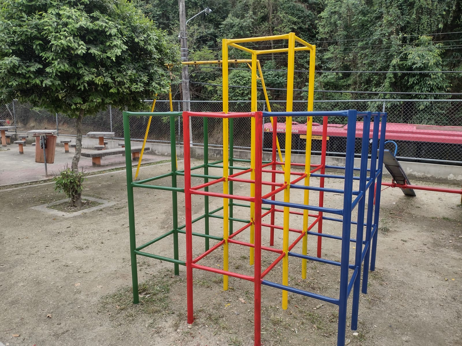 Roçamos, limpamos e pintamos os brinquedos no Baldeador.