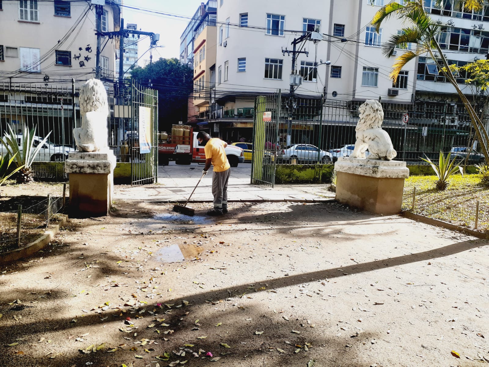 -Limpeza das jardineiras da Praça Dr.Vitorino
