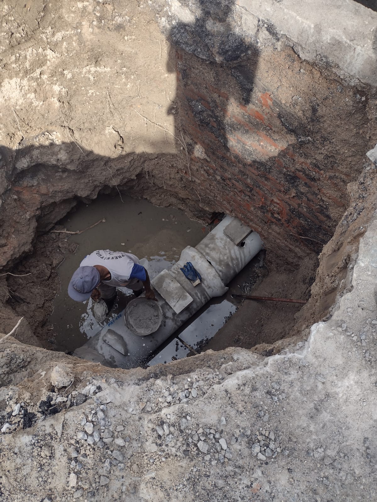 . Reparo de rede de drenagem (escavação manual e mecânica/retirada de manilha quebrada/fundo com pó de pedra/colocação de manilha de concreto de 400mm/envelopamento com concreto/reaterro com auxilio da retro/retirada de entulho)