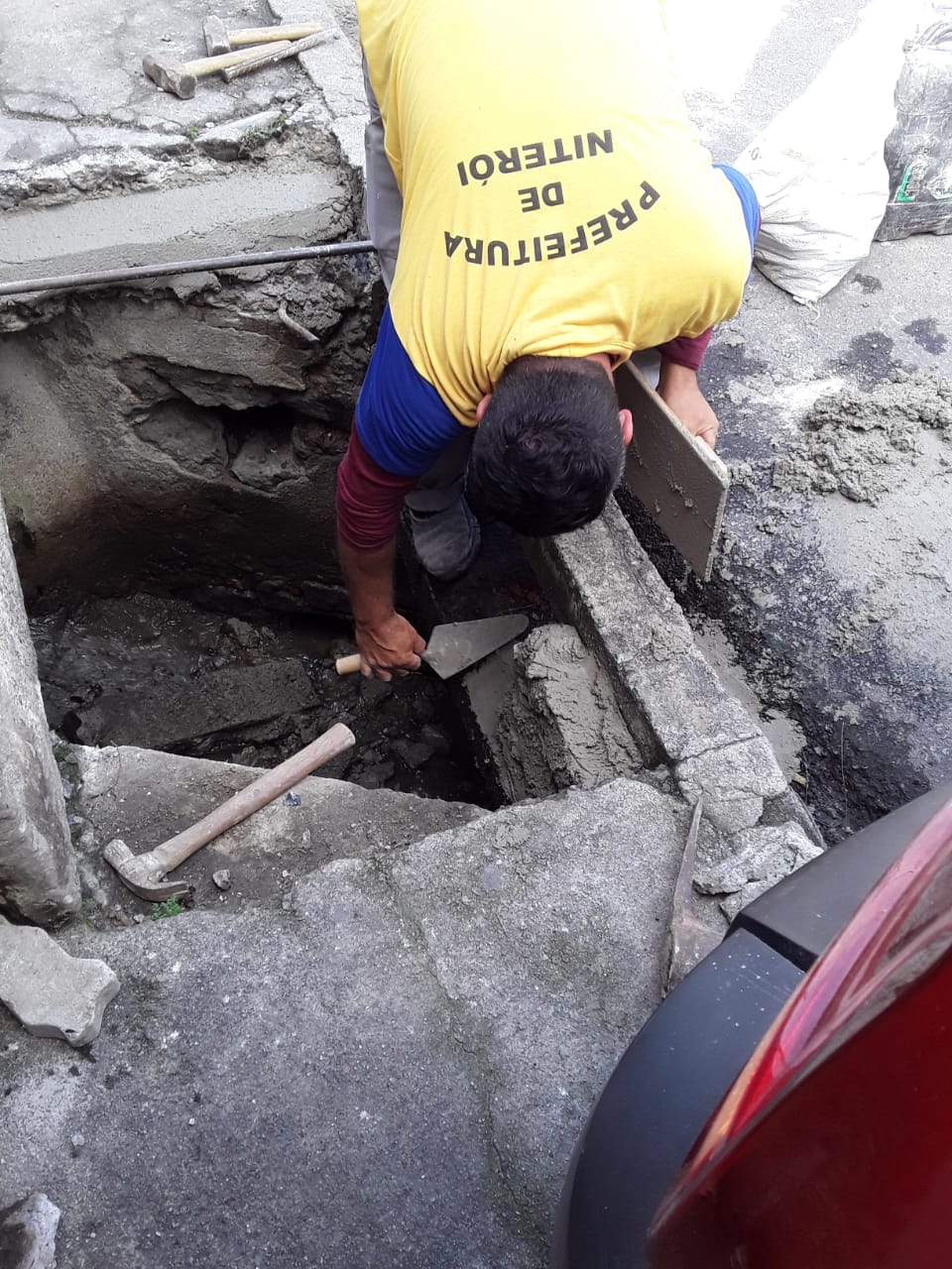 Rua dos Pampos - Piratininga.- Reparo de rede e execução do tampão de concreto armado.
