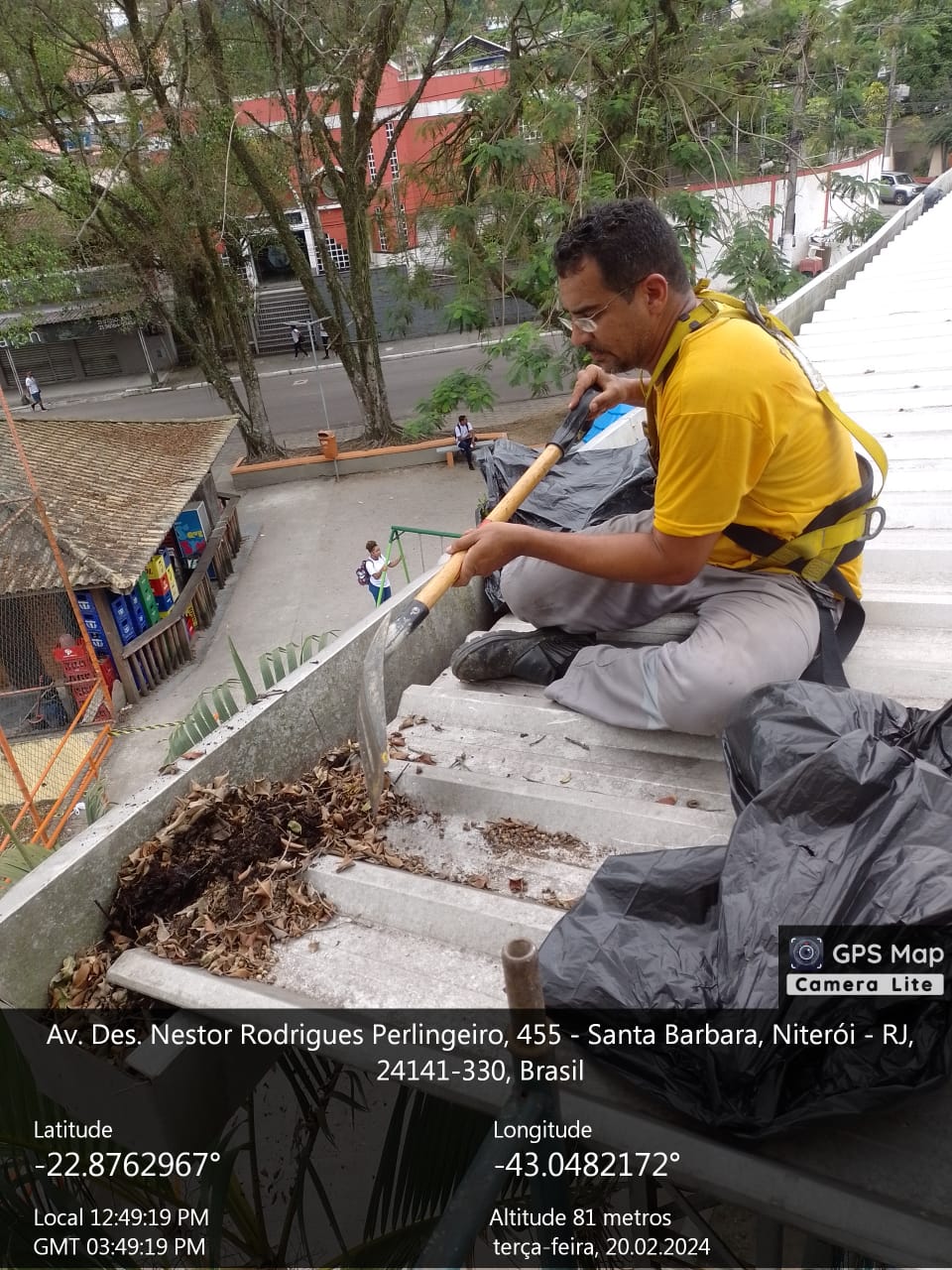 Limpeza e recuperação da calha, reparo das balizas da quadra de futebol e do aro da cesta de basquete .