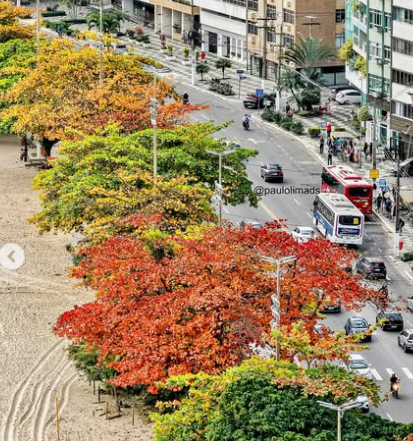 Árvores deslumbrantes, as amendoeiras cheias de cor, estão embelezando a paisagem a orla de Icaraí.