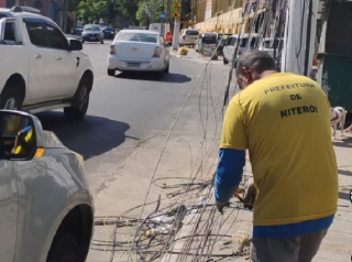 Com o Programa Caça-Fios, estão sendo retirados fios soltos e inutilizados para acabar com o emaranhado nos postes. Já foram mais de 15 toneladas de fios retirados das ruas.