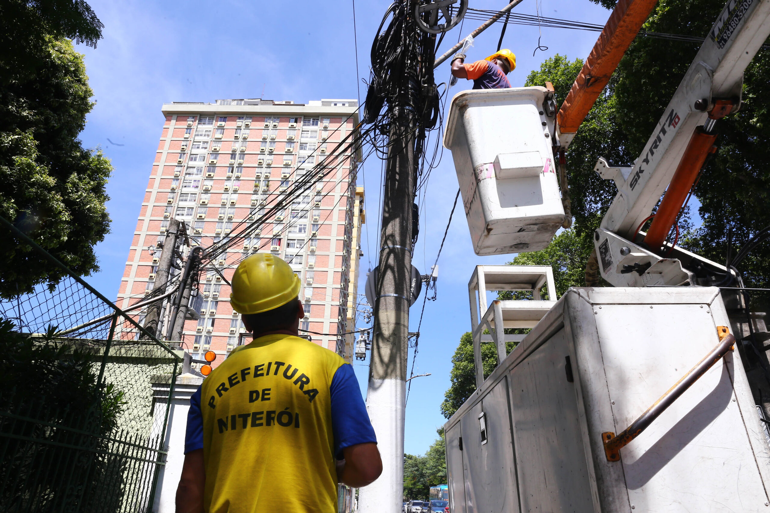A intensificação da limpeza das ruas e a retirada dos fios soltos são metas para os primeiros 100 dias de governo e visa transformar a paisagem urbana de Niterói.