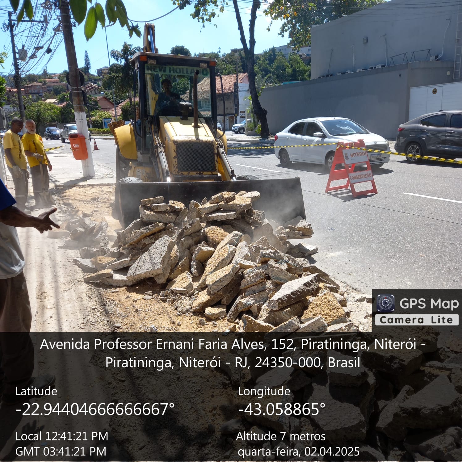 As equipes permanecem também na obra de construção de rampas na Ari Parreiras, no mesmo local., assim como instalação de guarda corpo.
