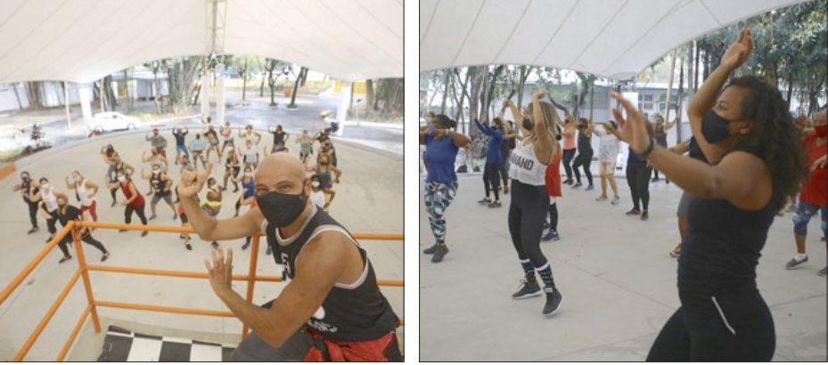 São aulas gratuitas de danças de ritmos diferentes, pilates, jazz infantil, ginástica para idosos, coral e lutas. A maioria das atividades é realizada ao ar livre e as que precisam de barras ou espelho são realizadas em sala com ventilação e distanciamento.