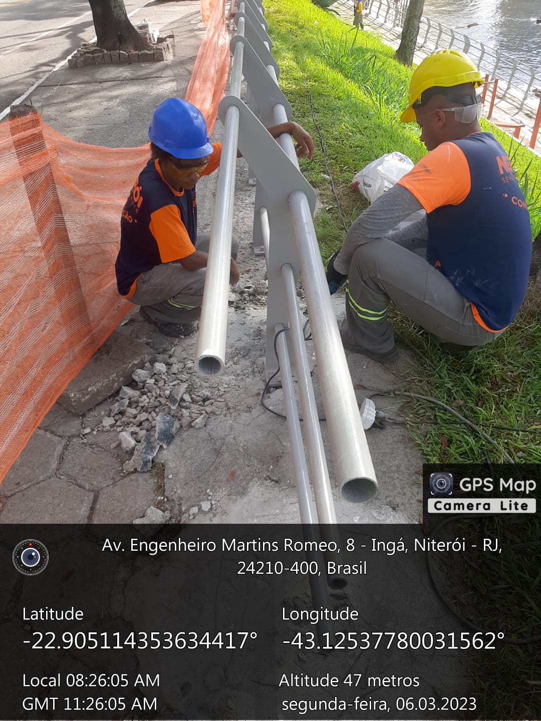 Continuidade da instalação do guarda corpo de fibra de vidro .
