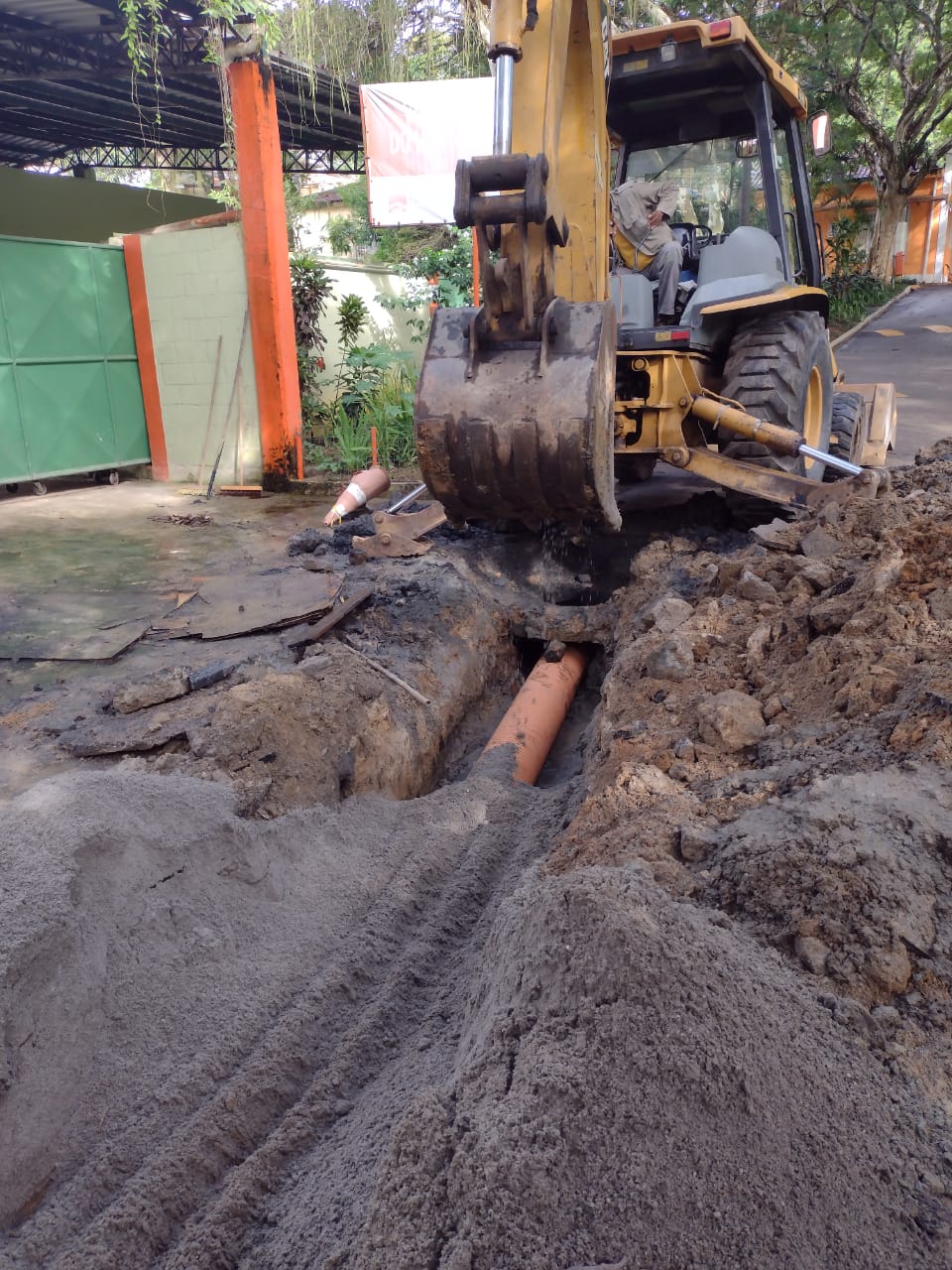 Foi executada a ecavação, colocação de tubo de 300mm de drenagem, reaterro com pó de pedra e execução de caixa de concreto no Horto Florestal do Fonseca.