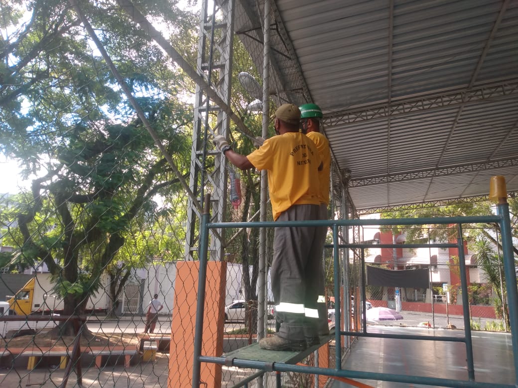 Pintura da praça e recuperação do alambrado da quadra polivalente .