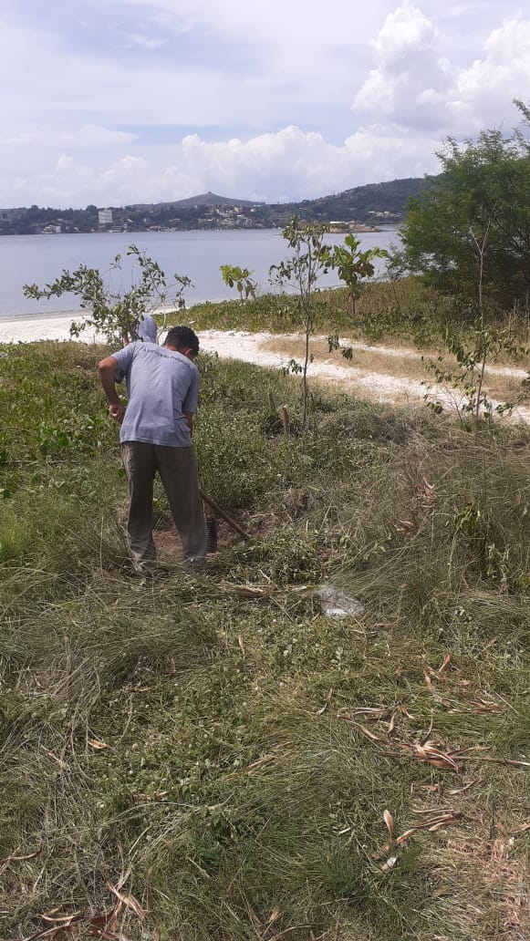 <p>Continuou sendo executada nesta sexta-feira (22) a limpeza com retirada de espécies invasoras na Restinga de Charitas:</p>