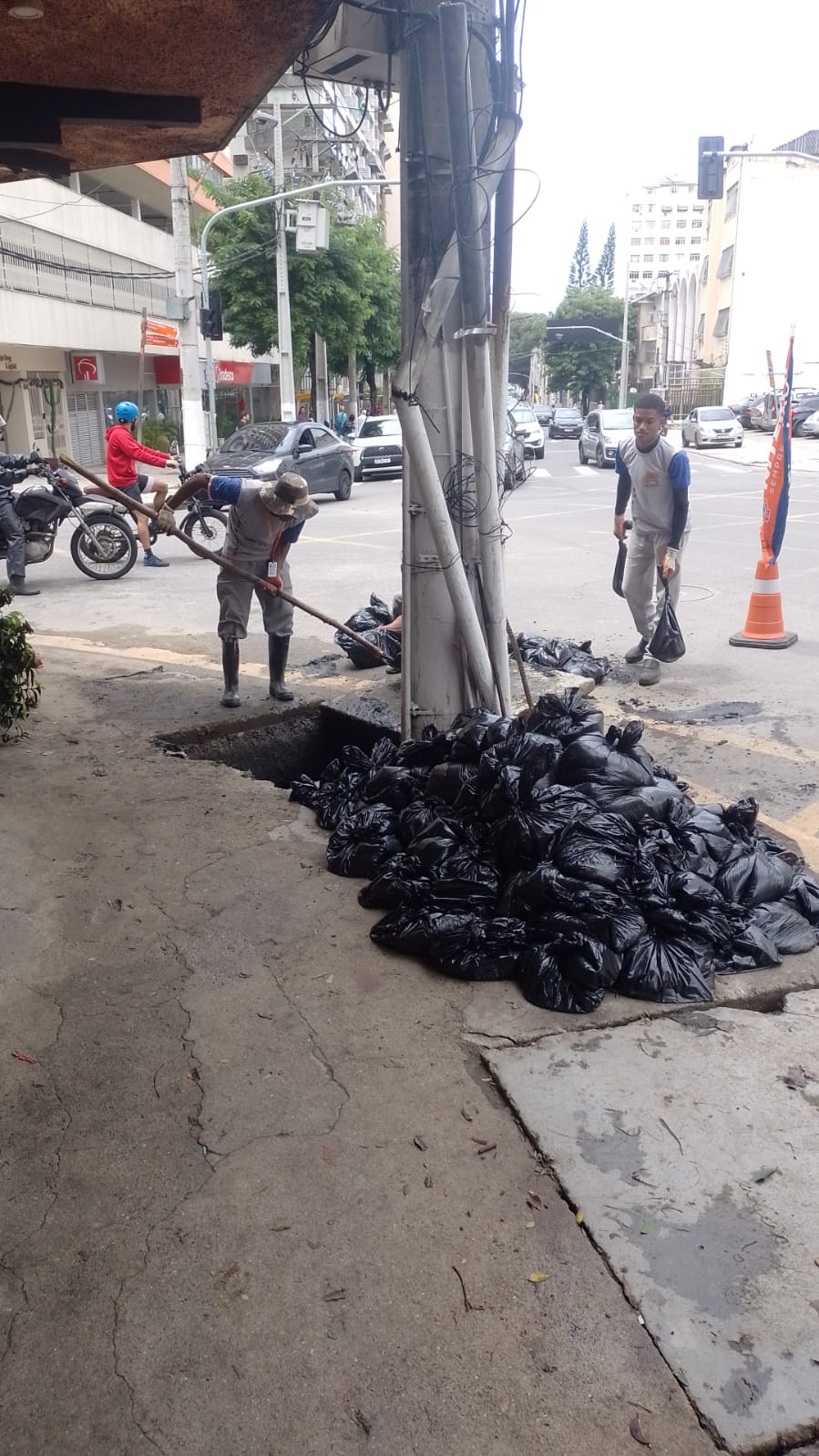 limpeza de ralos na Rua Prof. Plínio Leite , no Centro - 76 sacos de lama e 5 ralos limpos
