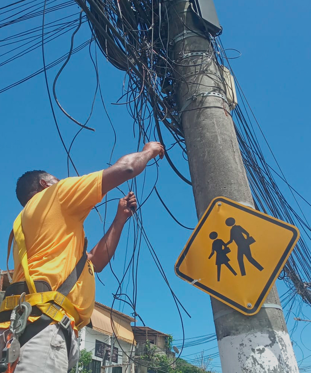 Esta semana equipes da Secretaria de Conservação e Serviços Públicos trabalharam para identificar e remover as fiações soltas, partidas e/ou caídas nas vias e abandonadas pela cidade.