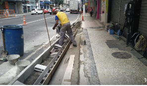 - Alargamento de um trecho da calçada da rua da Conceição - Centro (Nivelamento da base da calçada para aplicação de concreto e confecção de jardineira)