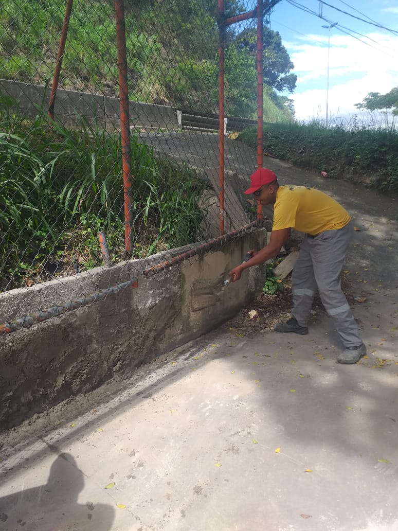 Recuperação dos mourões, que foram danificados e pintura dos mobiliários que foram pichados por vândalos .