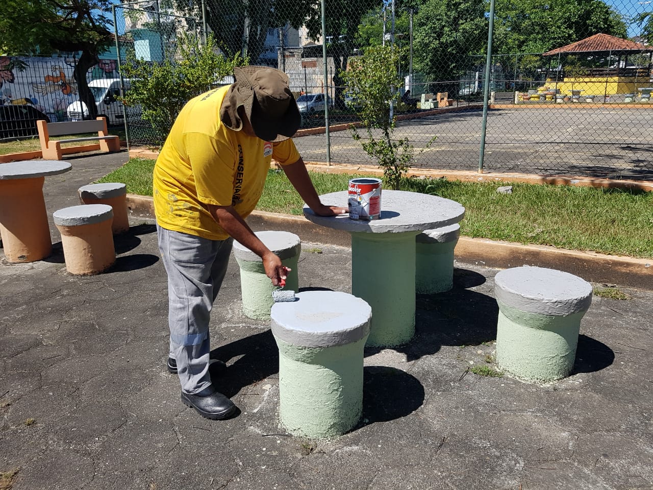 Limpeza e pintura dos equipamentos de ginástica e da praça .
