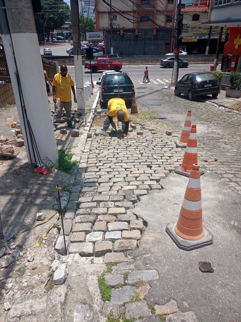 Recuperação de meio fio , gola e reparo de calçada em intertravado .