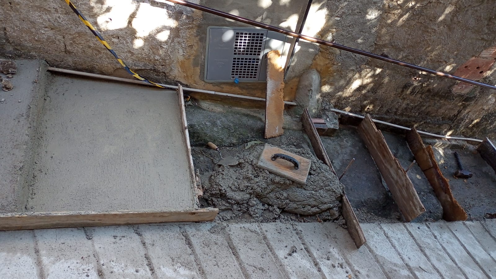 Reparo do caminho em concreto .