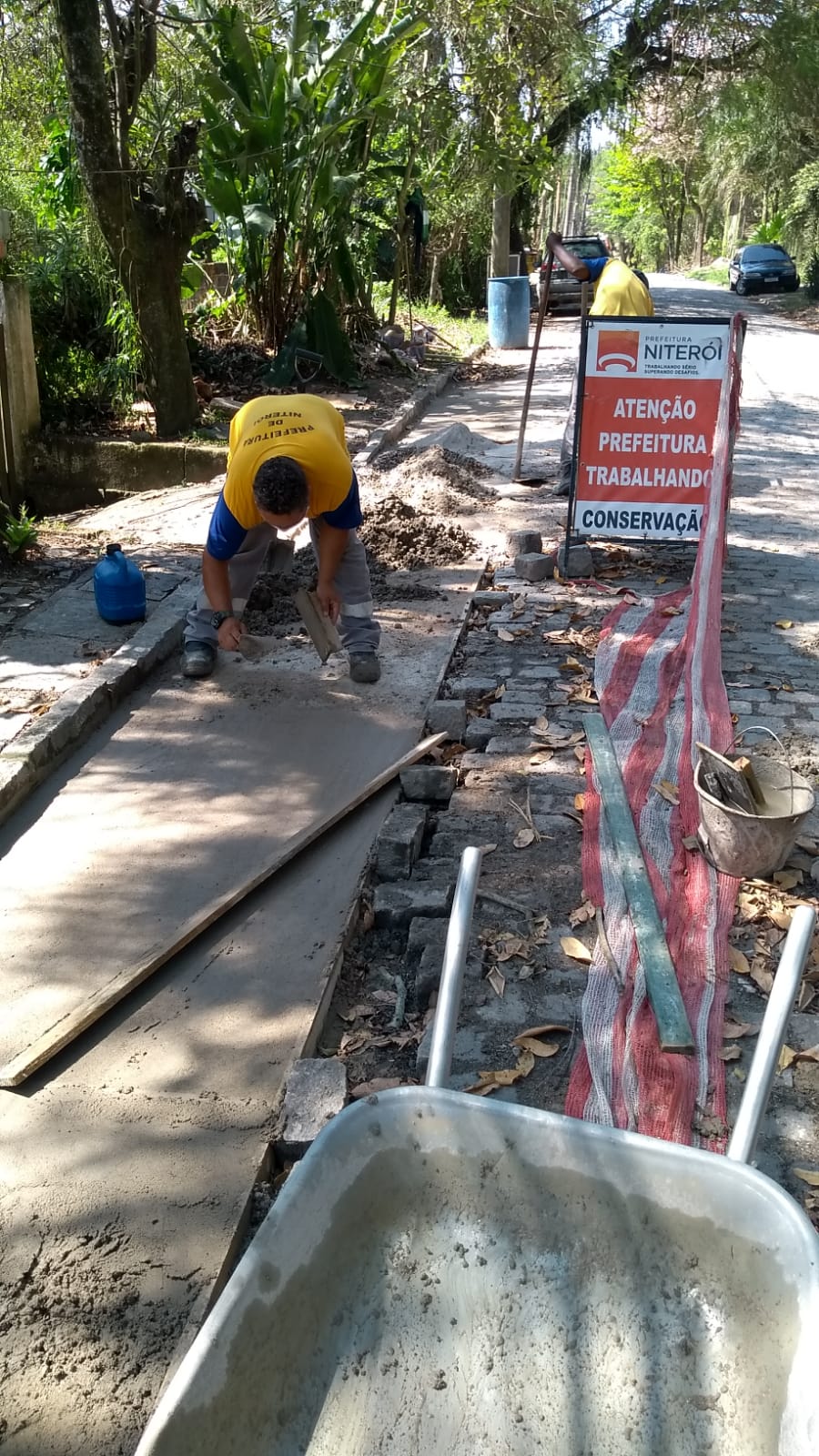 Recuperação do pavimento em paralelepípedo.
