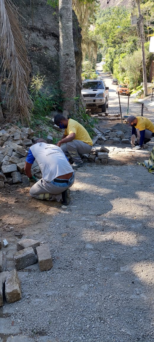 Recuperação de pavimento em paralelepípedo.
