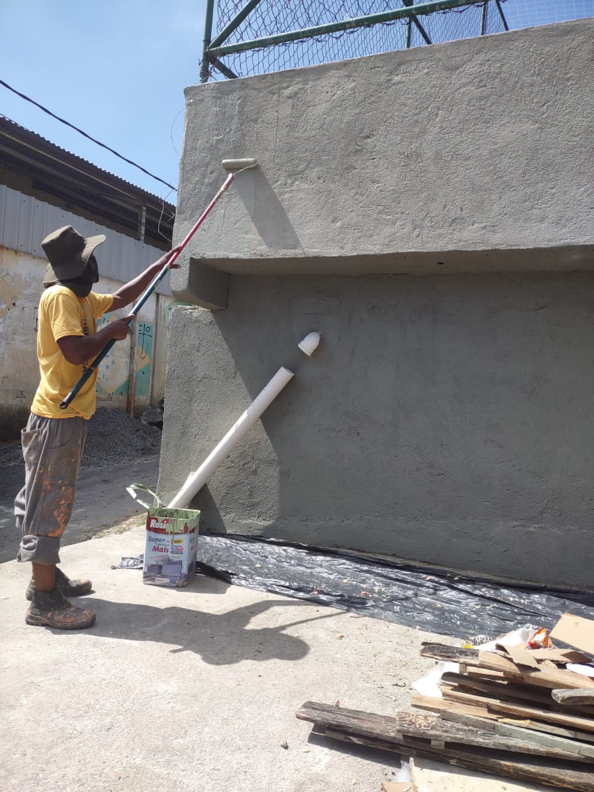 Limpeza e pintura do vestiário e da mureta do campo de futebol .