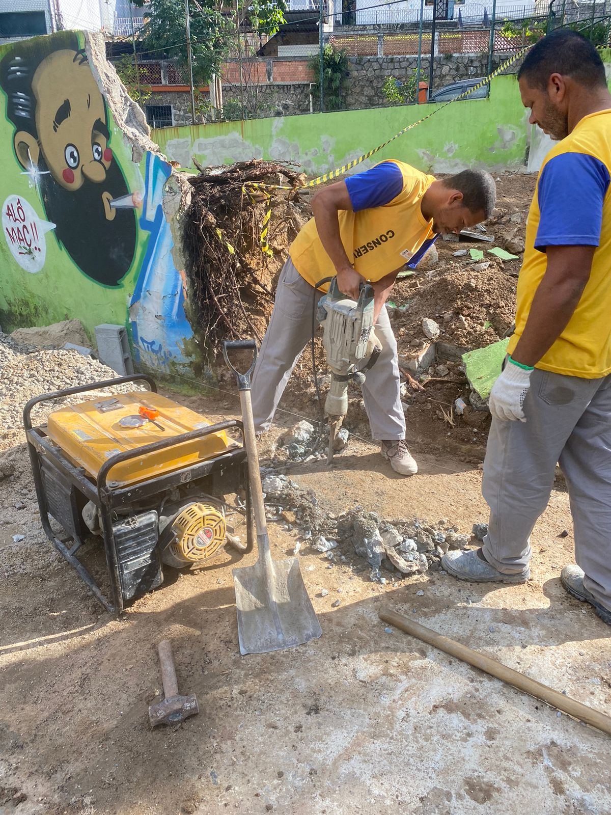 Início da fundação, para reconstrução do muro .