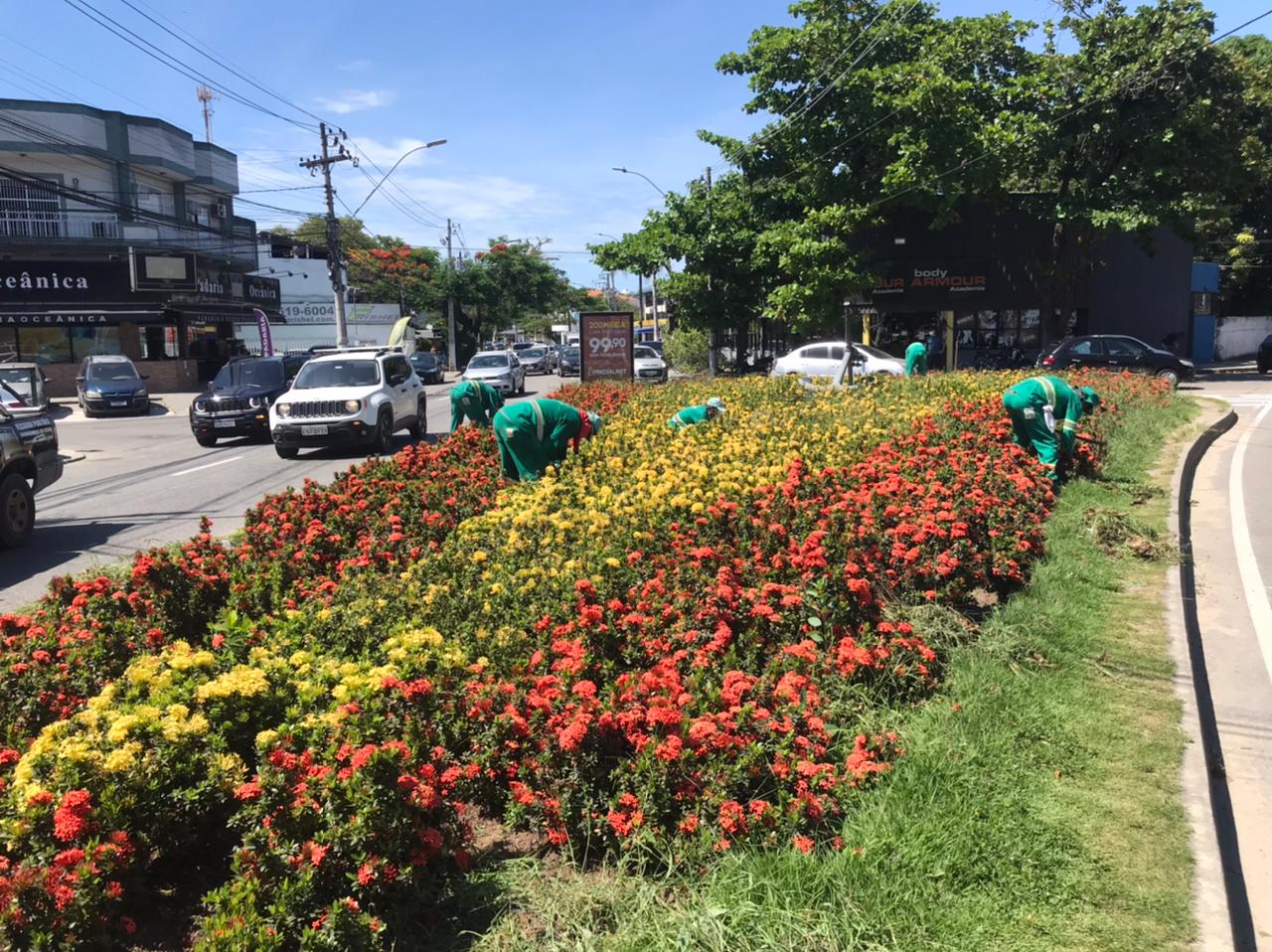 Equipes seguem realizando a manutenção dos canteiros na cidade.
