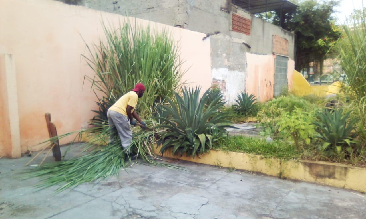 Varrição nas praças Eneas de Castro e Leonir Ramos