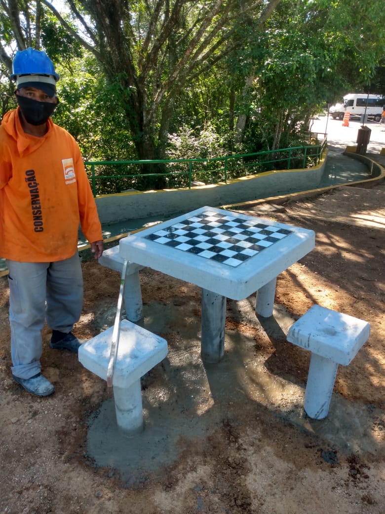 O Parque da Cidade ganhou mais três conjuntos de mesas (com tabuleiros para dama ou xadrez) e bancos de concreto .