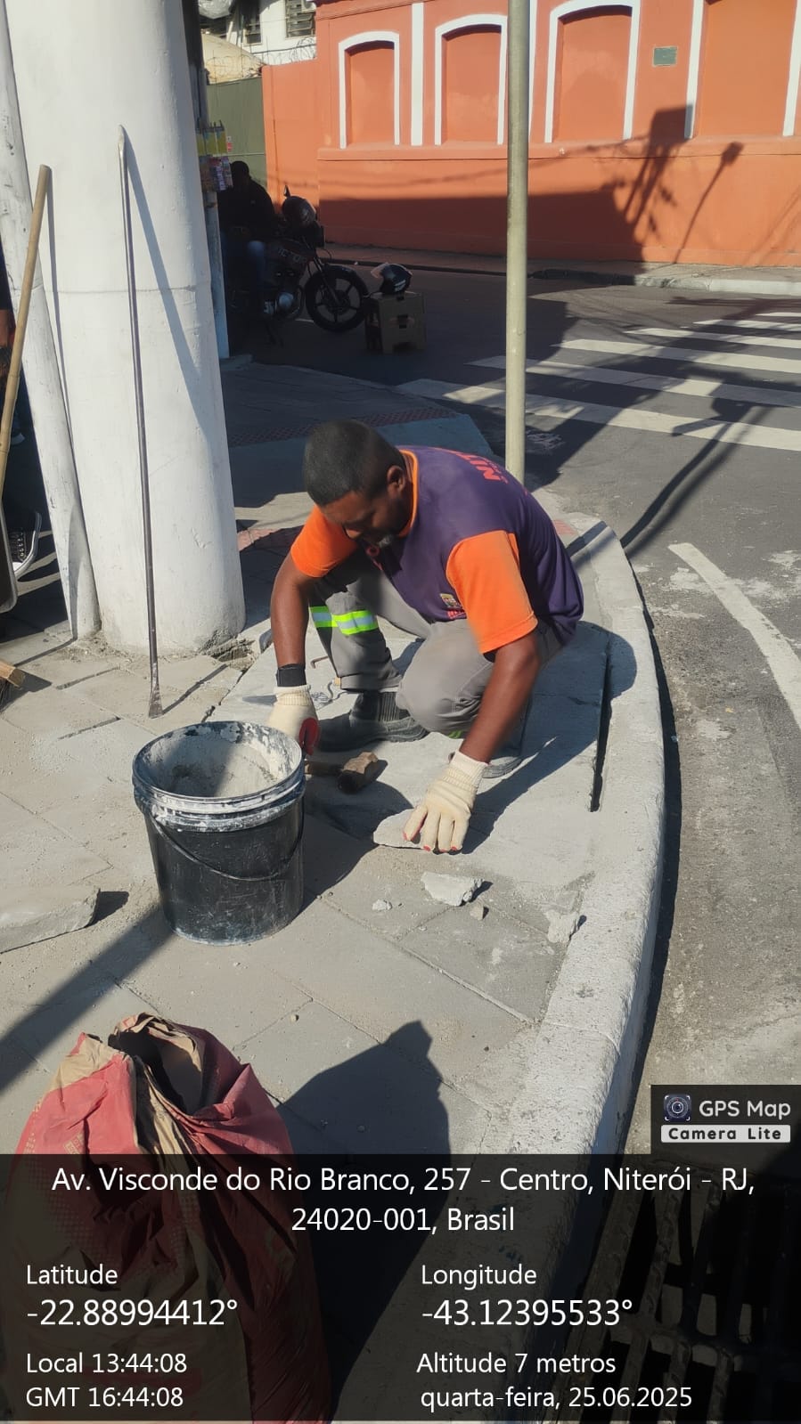 Avenida  Visconde do Rio Branco com Rua Quinze de novembro - Centro  *Recuperação de calçada em pedra cimentícia e reposição de tampa de caixas de passagem telefônica*