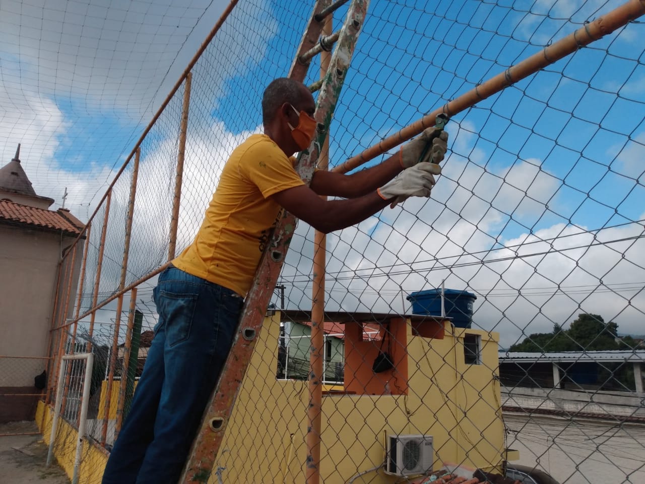 Reparo na tela e pintura no entorno do Campo de futebol da comunidade da Igrejinha- Largo da Batalha.