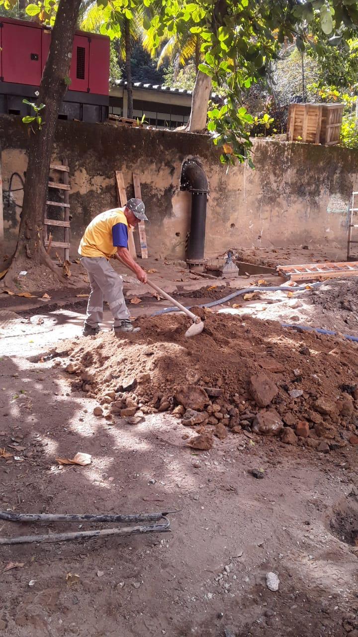 Abertura de vala para a instalação da tubulação da elevatória