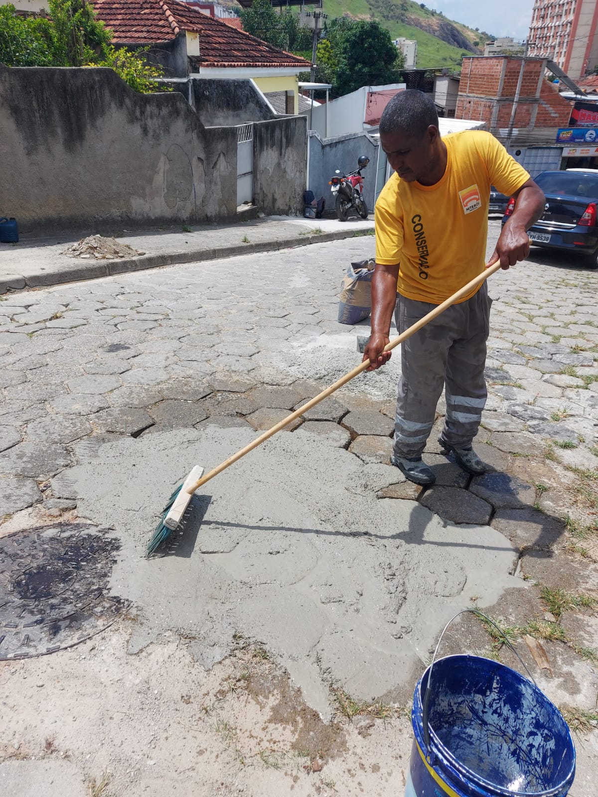 Recuperação de pavimento em bloquetes.