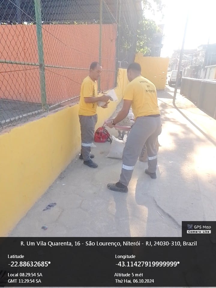 Reparo e pintura nos muros , após serviços de solda elétrica dos alambrados velhos .