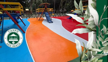.O piso do parquinho do Campo de São Bento passou por pintura e revitalização para garantir mais segurança e beleza para as brincadeiras das crianças.