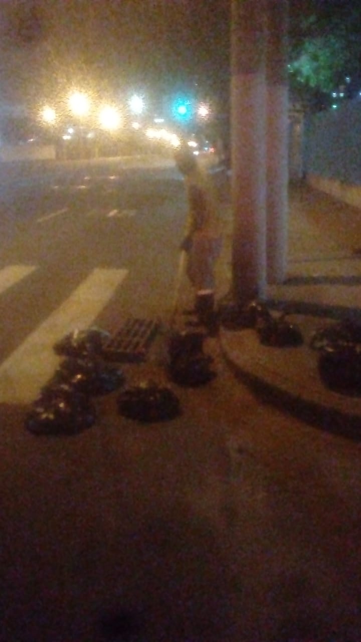 Na Avenida Feliciano Sodré, no Centro, foram limpos 23 caixas e 12 ralos. Gastos 440 sacos para recolher os detritos.