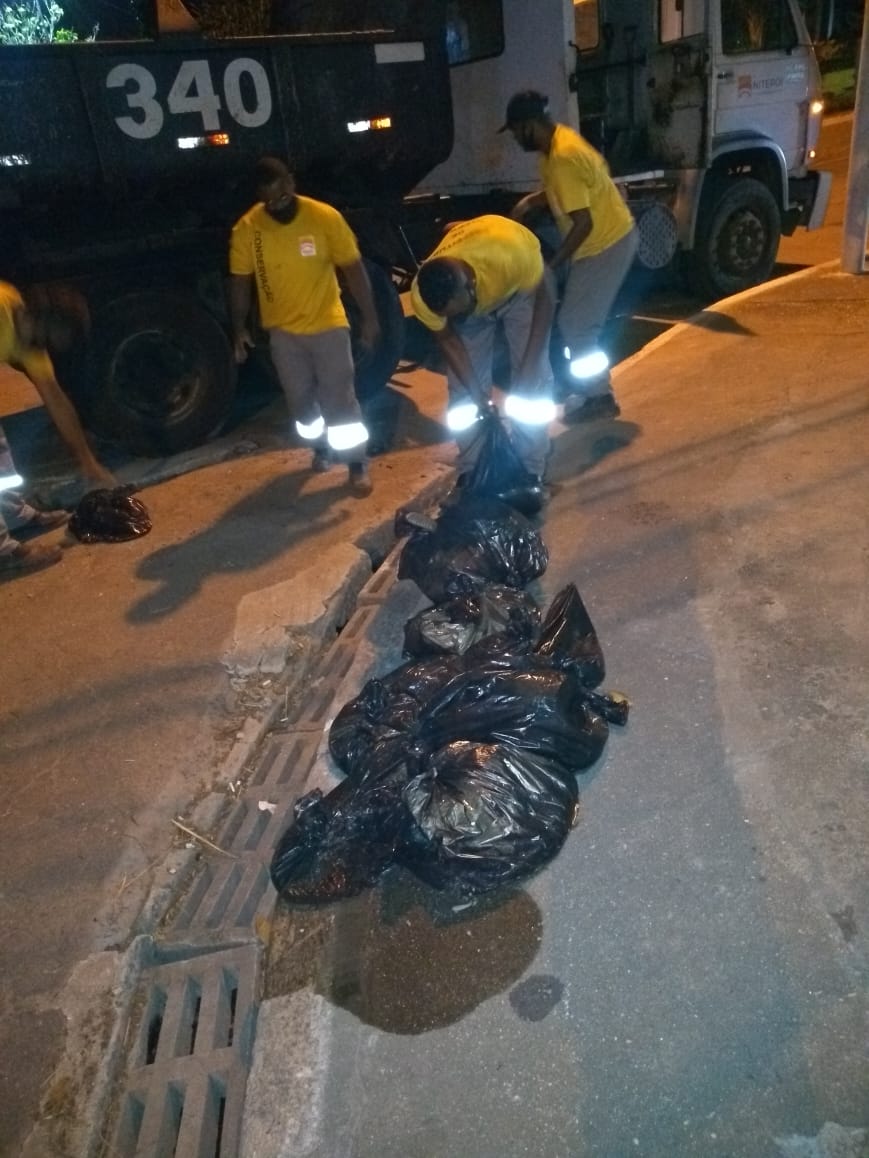 Na Av. Vsconde do Ro Branco foram 26 ralos limpos e gastos 50 sacos