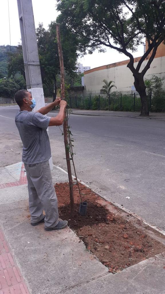Foram plantadas cinco resedás rosas e cinco resedás brancos na Rua Professor Plínio Leite, no Centro, em frente do Caminho Niemeyer.