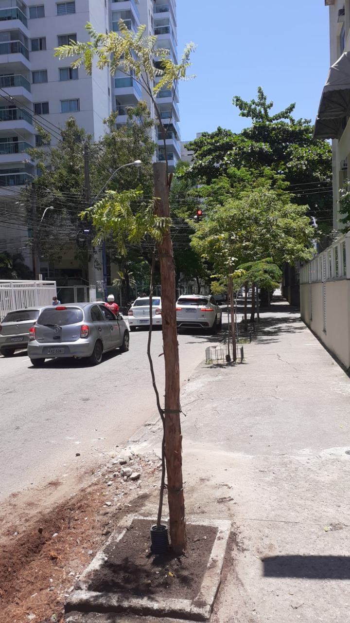 Foram executados o plantio de uma sibipiruna, com abertura de gola,tutoramento, amarrio e recomposição de calçada com piso de concreto simples na Rua General Pereira da Silva, nº 299 - Icarai: