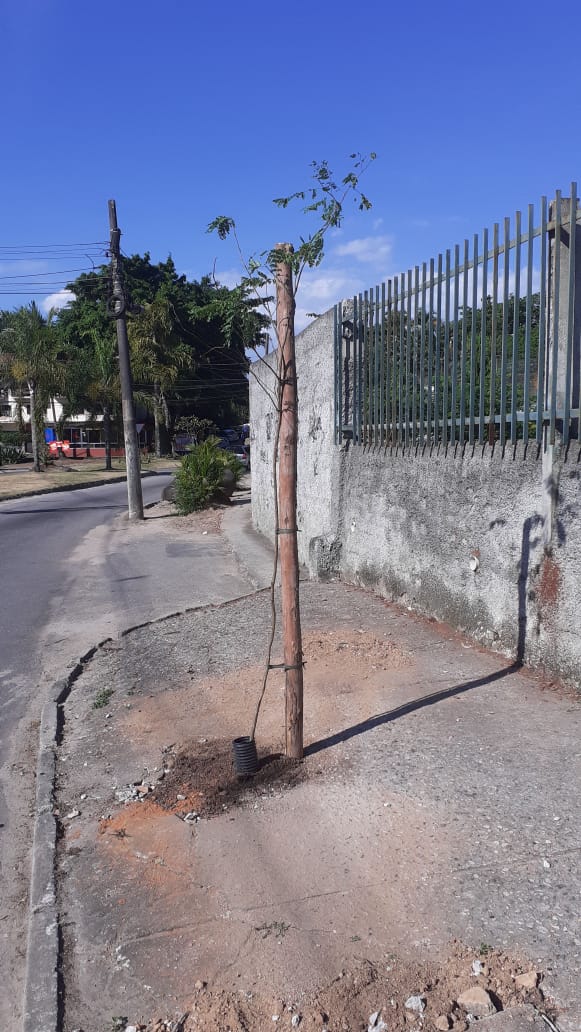Foram executados plantios na Av. Nelson de Oliveira e Silva, nº 68 - Cantagalo (em frente ao Cemitério Parque da Colina):