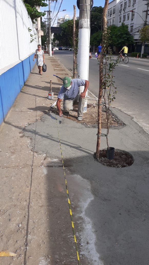 Foi executada a recomposição de calçada com piso de concreto simples na Av. Roberto Silveira, calçada da quadra que faz esquina com a Rua Lopes Trovão - Icaraí: