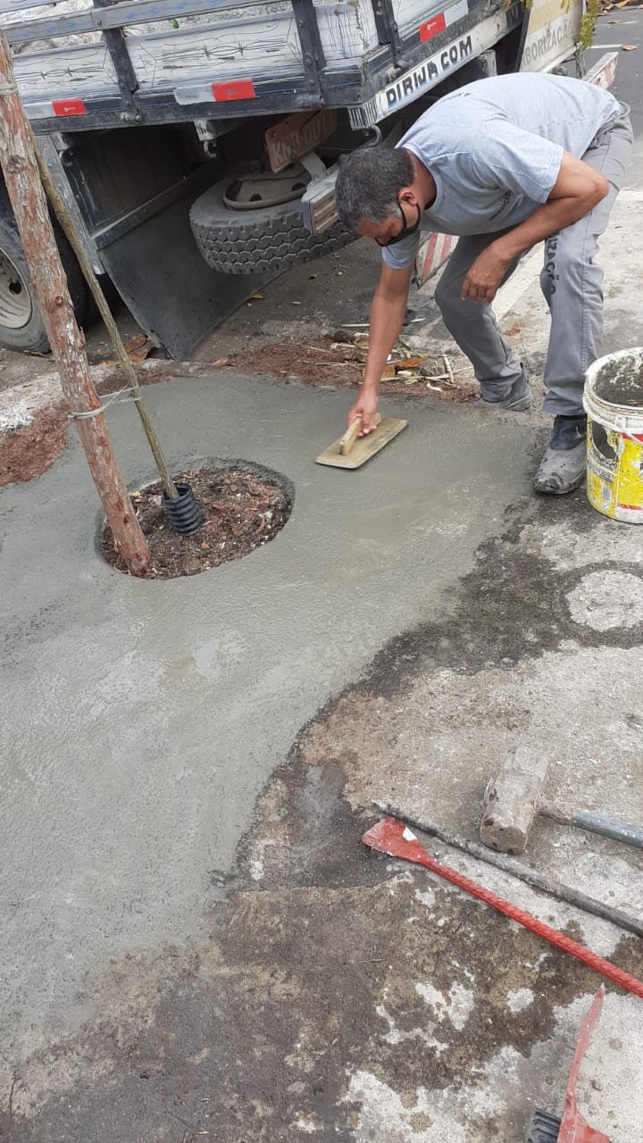 Foi executada a recomposição de calçada com piso de concreto simples e colocação de cordão de concreto na Rua Américo Oberlander lado oposto ao n° 580, em Santa Rosa