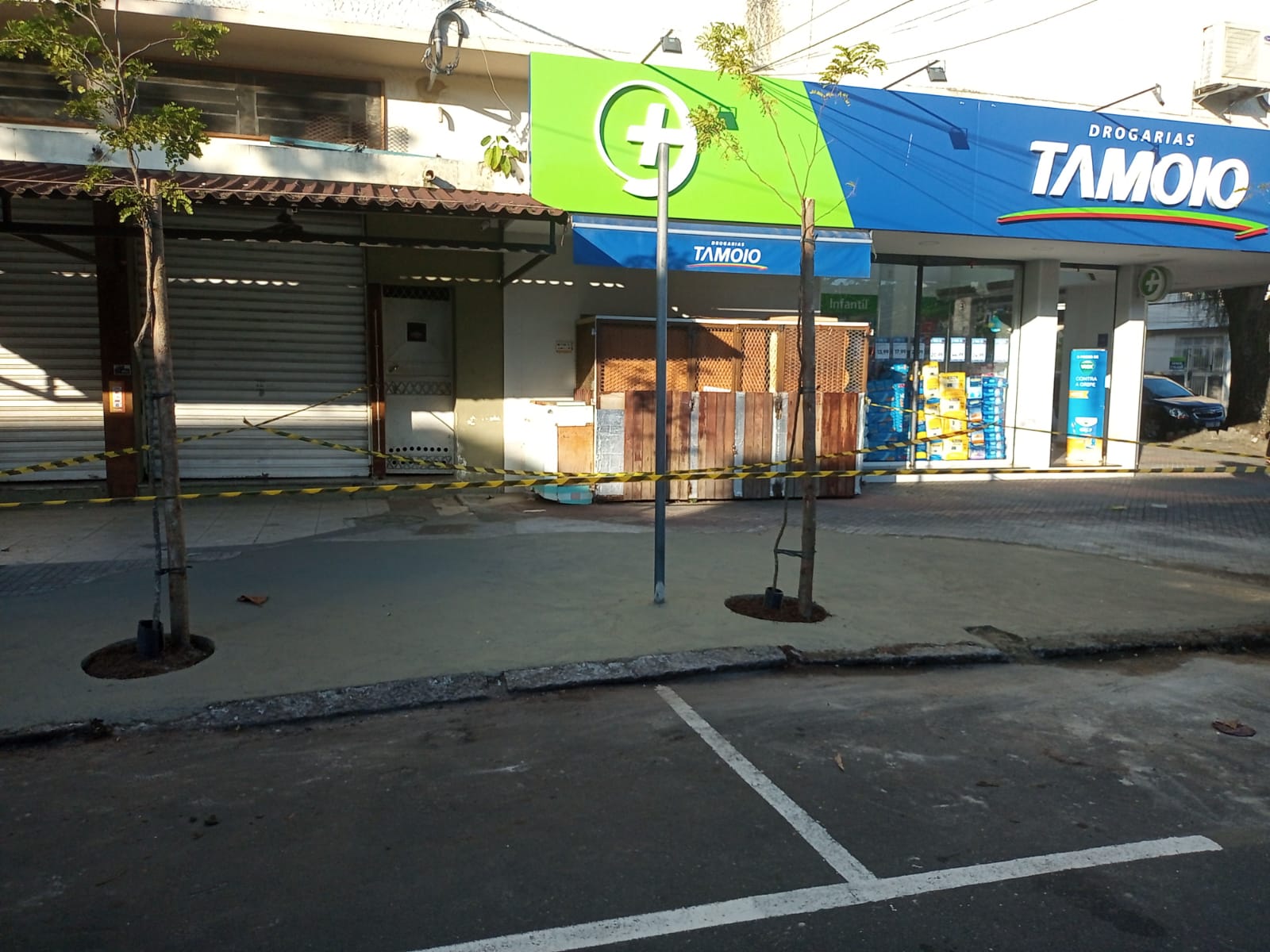 Foi realizada também a recomposição de calçada com piso de concreto simples e colocação de concreto simples na Rua Arariboia, nº253- São Francisco, com plantios de dois paus brasil.