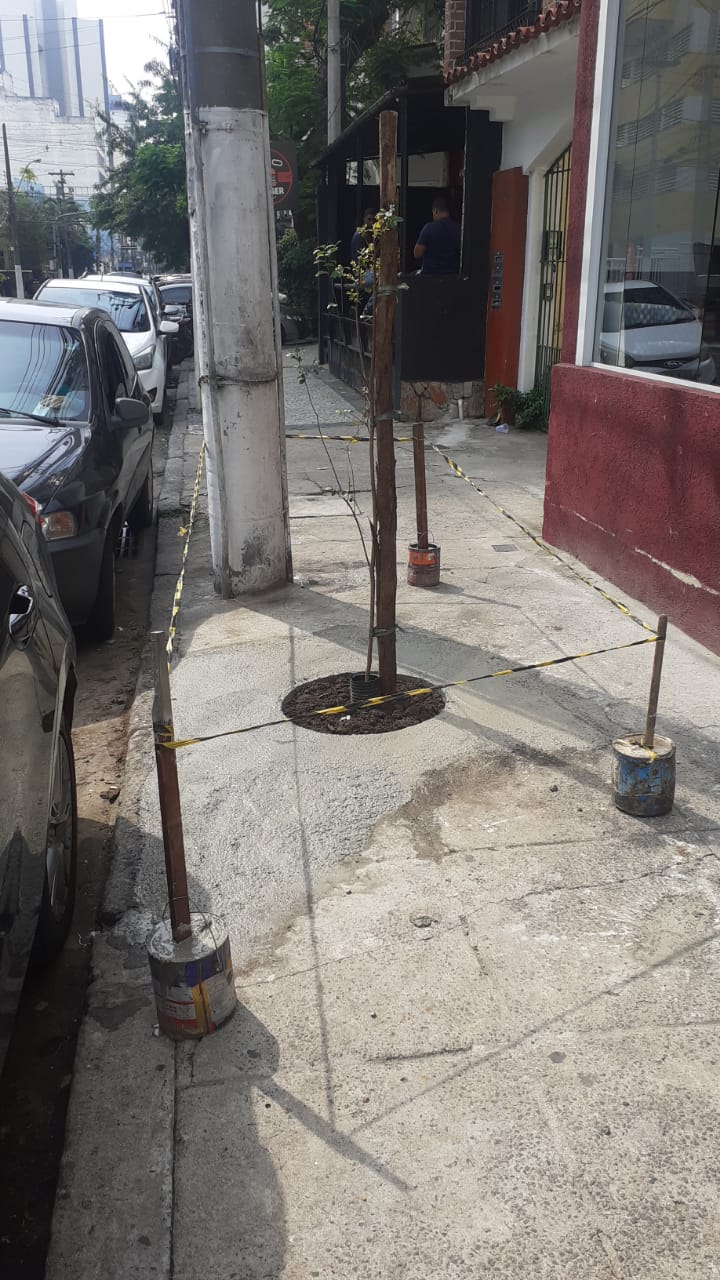 Foi executada a recomposição de calçada com piso de concreto simples e colocação de cordão de concreto simples na Av. Sete de Setembro,192 - Icarai: