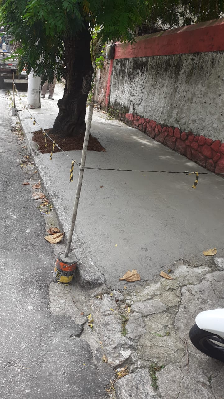 Foi executada a recomposição de calçada com piso de concreto simples na Estrada Caetano Monteiro, em frente ao nº 906 - Vila Progresso: