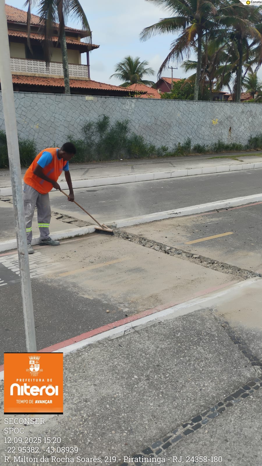 Recuperação de calçada em concreto/Retirada de entulhos em toda extensão da Praia