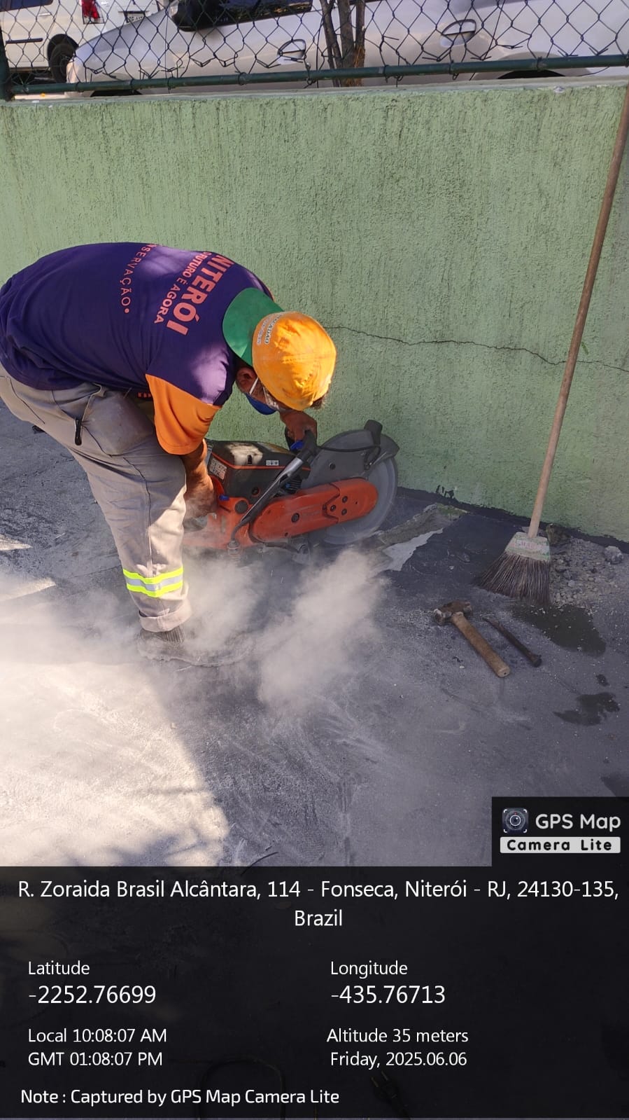 Ainda referente ao Prefeiitura Móvel, equipes estão realizando a recuperação de piso em concreto e de bancos e mesas em concreto da Praça Guadalajara, no Fonseca.