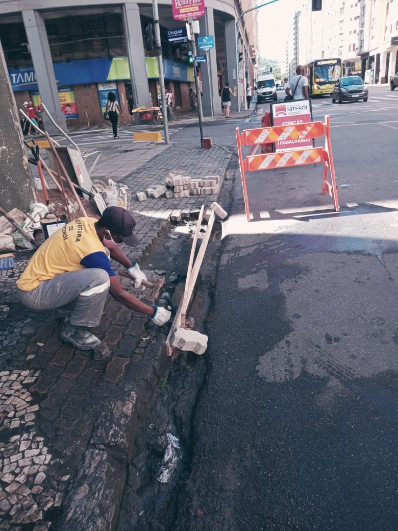 Recuperação do pavimento em paralelepípedo.