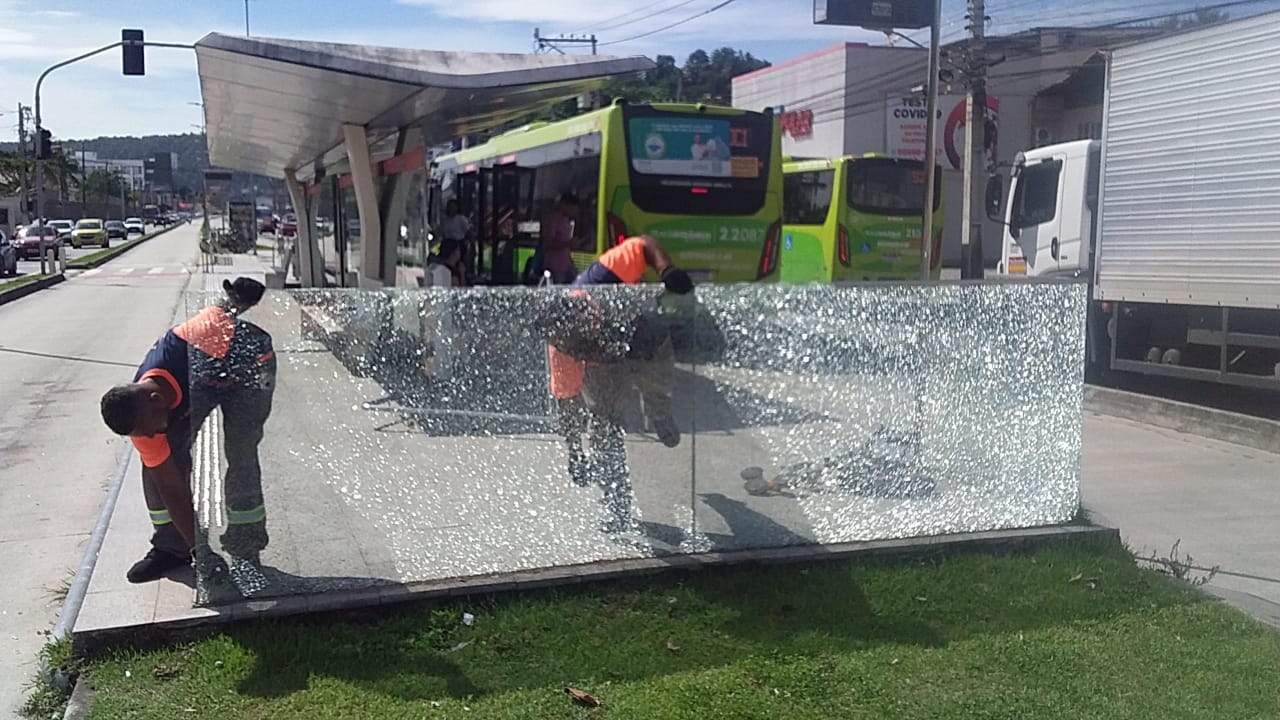* Retirada dos vidros temperados que foram quebrados por vândalos .