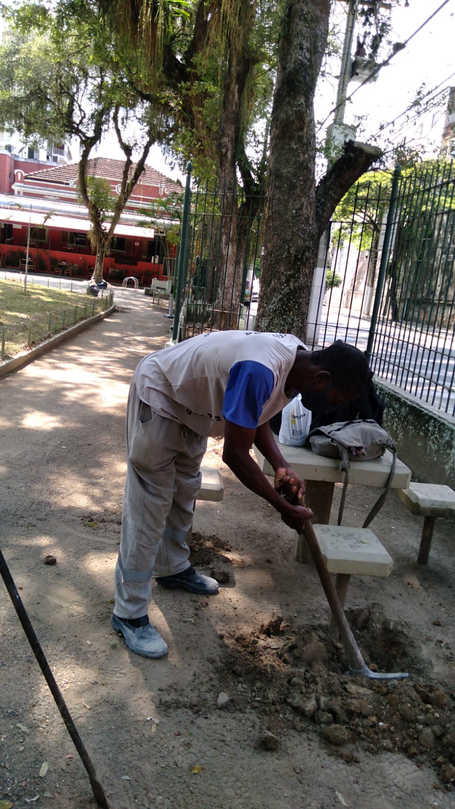 Recuperação do meio fio das jardineiras e reparo nas mesas/bancos .